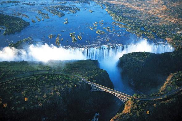 Водопад Виктория является единственным водопадом, постоянно числящимся среди Семи природных чудес мира. Расположенный на границе между красивой, но очень бедной Зимбабве и популярной на сафари туры Замбии, самый крупный водопад в мире по праву называют одним из самых красивых и поражающих.